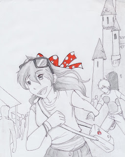 Okay, so first you need to decide what you're trying to say with your art; and no, it's not like a sentence, it's not something you can write. It's more like a feeling. I wanted to portray joy in a young girl in a theme park. Here I imagine she's pulling her fiance away to space mountain. :P